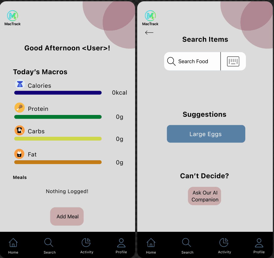 A lightweight mobile experience designed to make meal logging effortless and macro tracking intuitive.